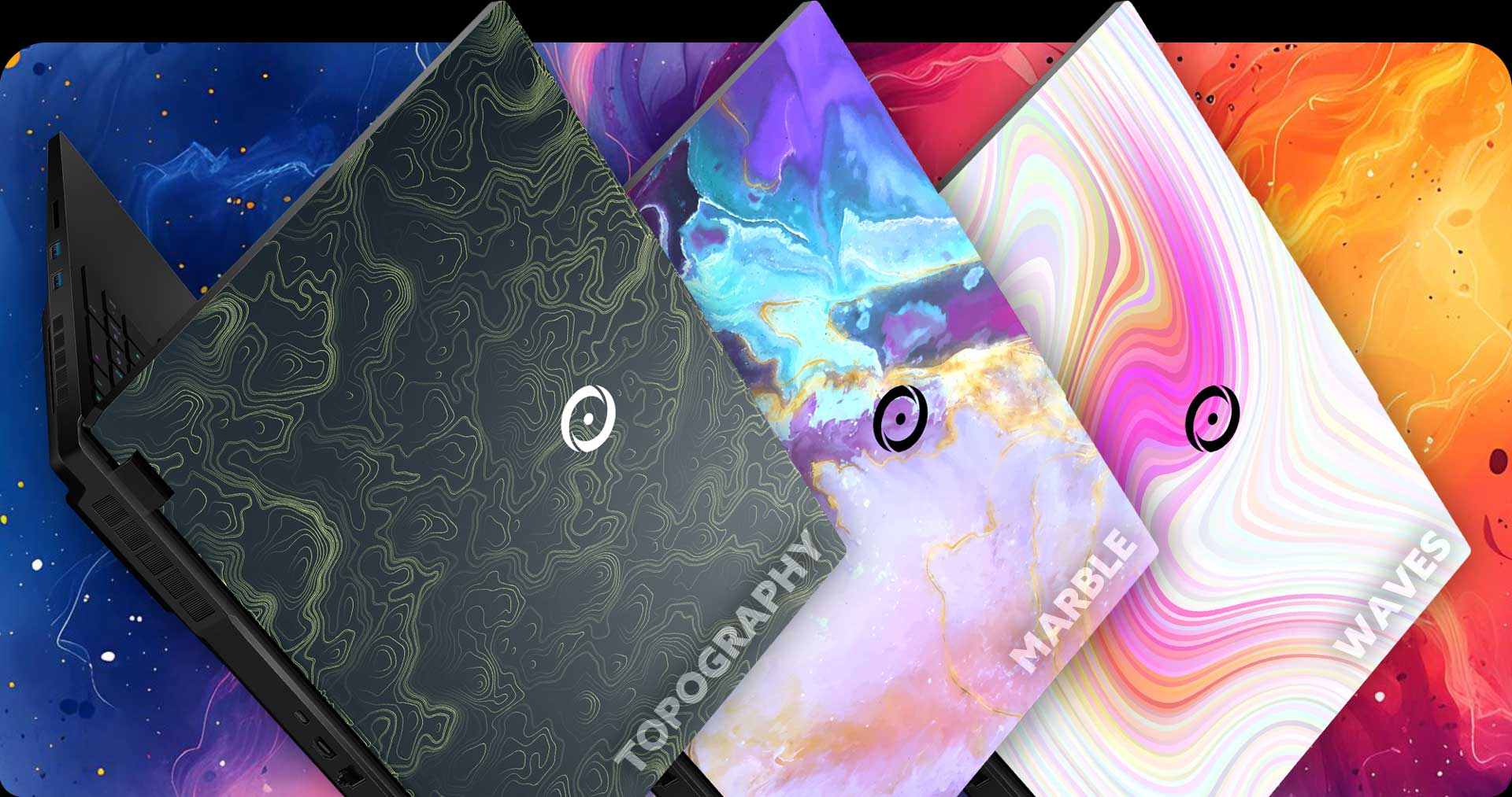 Black, Blue Neuron, Custom Print, Flare, Halftone, Liquid 1, Liquid 2, Marble 1, Marble 2, Marble 3, Neuron Print, Prism, Starfield, Topography, Tropical, Tropical Vice, Waves 1, Waves 2, Waves 3, Waves 4, Waves 5