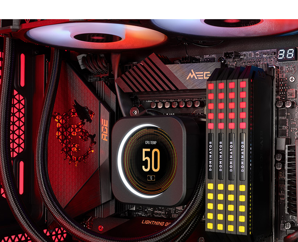 You can also customize the performance and cooling of your M-Class with the new CORSAIR iCUE H100i or H150i Elite CAPELLIX LCD Display CPU Cooler that allows you to create a personalized LCD screen that displays GIFs, images, and system information.